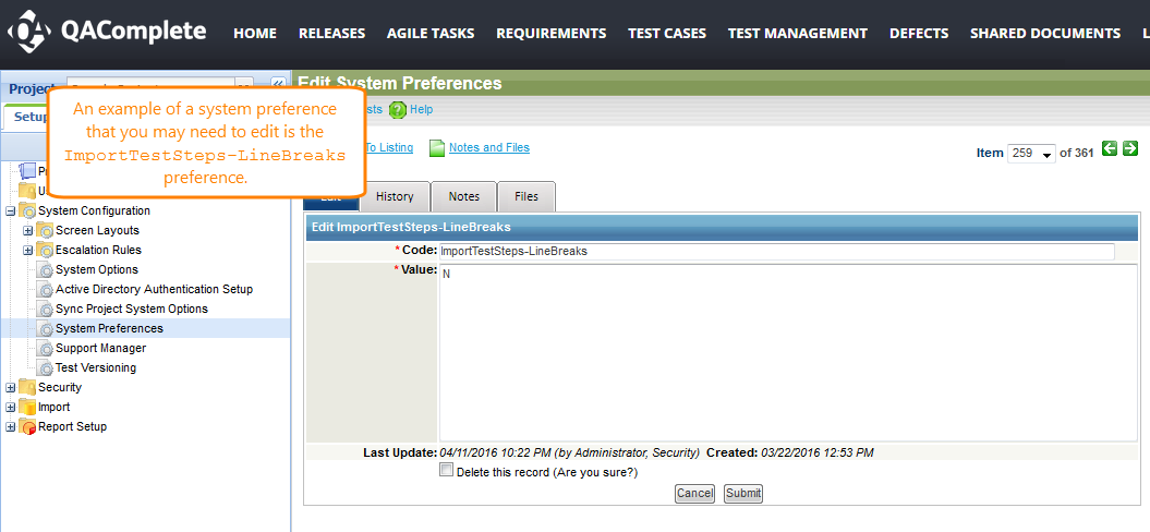 QAComplete On-Premises: Editing system preferences