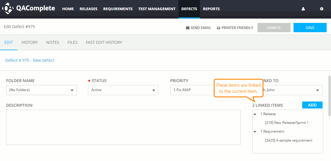 QAComplete User Tutorial: Linked items in the Edit from (old UI)