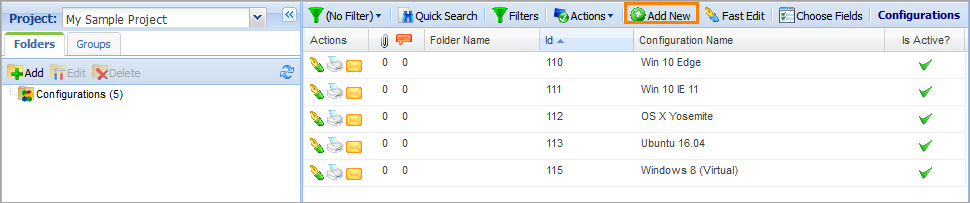 To begin working with configurations, go to Test Management > Configurations. From here, you can access various types of operations which you can perform with a configuration of your choice.