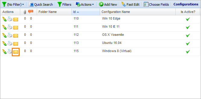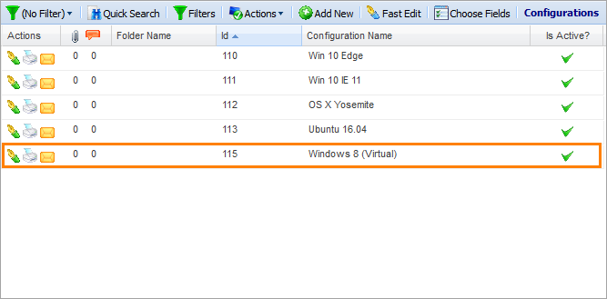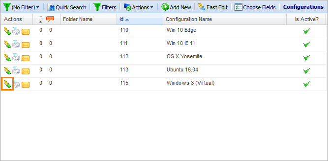 To perform operations with a specific configuration, click Edit this record in the Actions column near the configuration on the Configurations screen.