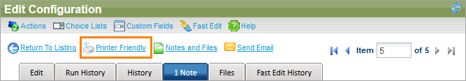 On the Configurations screen, click Printer Friendly in the Actions column near the needed configuration.