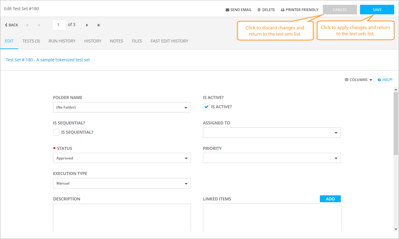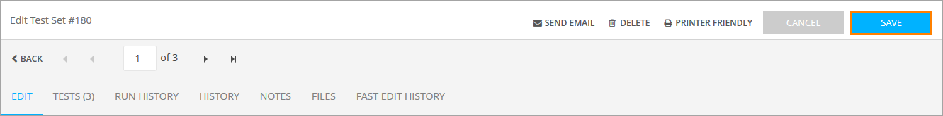 To apply the changes you have made, click Save, or click Cancel to return back to the Test Sets screen.