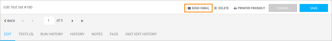 Click Send Email at the top of the Edit Test Set form.