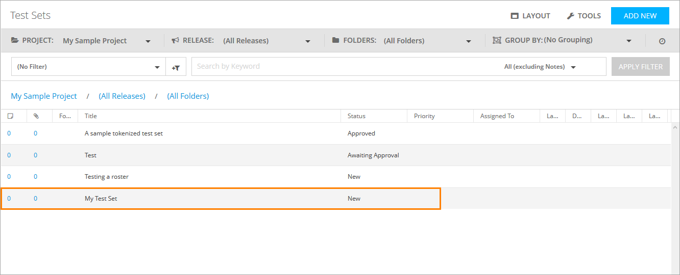 A new test set will appear on the Test Sets screen.