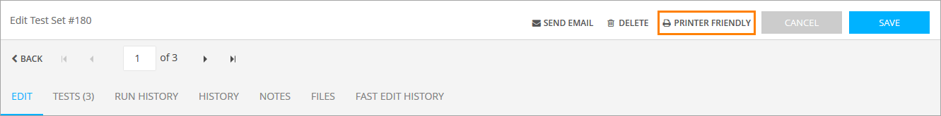 Click Printer Friendly at the top of the Edit Test Set form.