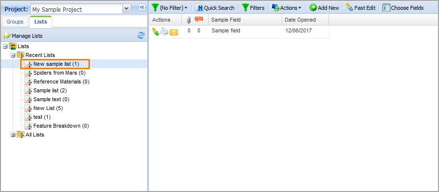 On the left navigation panel, select the list that contains items you want to view and click its name.