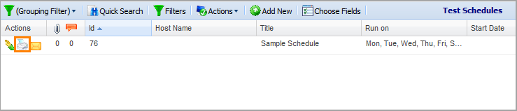 To perform operations with a specific schedule, click Edit this record in the Actions column near the schedule on the Test Schedules screen.