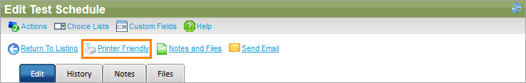 • Click Printer Friendly at the top of the Edit Test Schedule form.