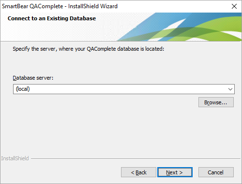 Select your QAComplete database server from the drop-down list or click Browse and locate the database: