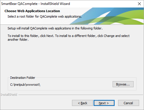 On this step, you can specify a root folder for QAComplete web applications.