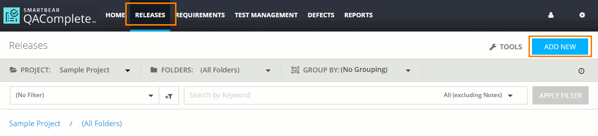 QAComplete User Tutorial: The Add New button for child items in Releases