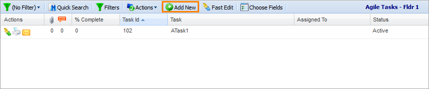 To create an agile task, click Add New on the Agile Tasks screen.