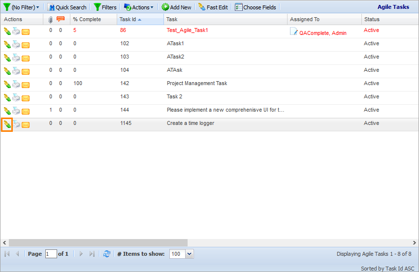 A new agile task will appear on the Agile Tasks screen.