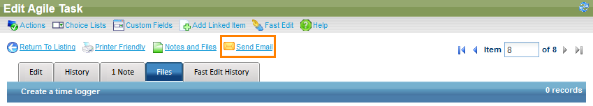 Click Send Email at the top of the Edit Agile Task form.