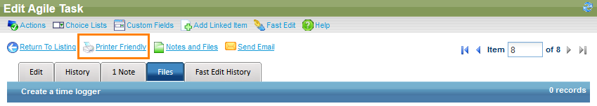 Click Printer Friendly at the top of the Edit Agile Task form.