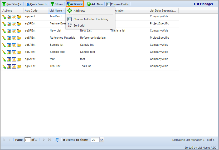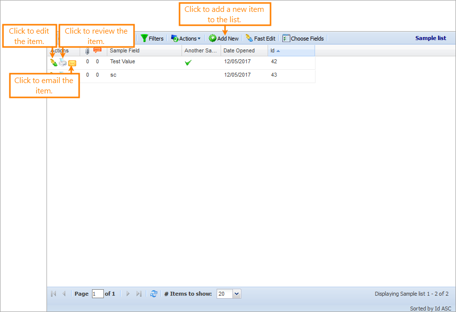 For every listing screen available in Lists, there are common actions available – such as navigation, filtering, search, and so on.