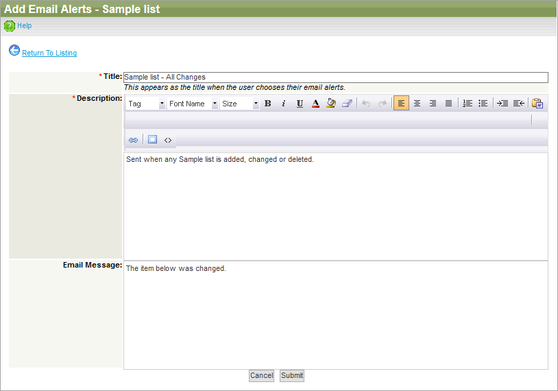 In the subsequent Edit Email Alert form, apply the changes you need.