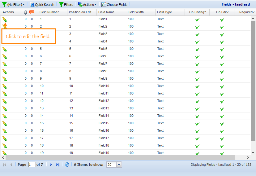 On this screen, you can edit fields for your list and modify properties of these fields.