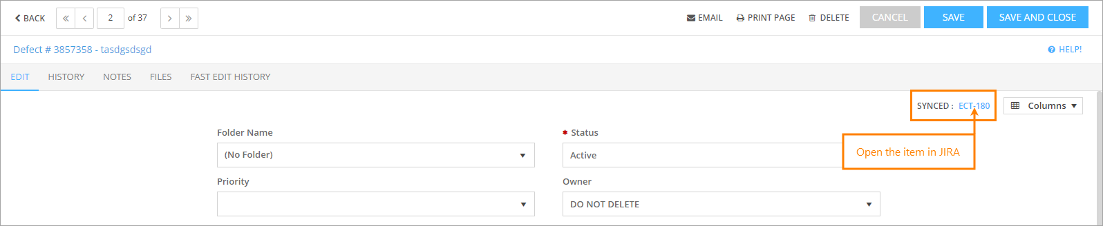 • When you delete a synchronized item from a Jira project, the QAComplete item will be deleted as well.