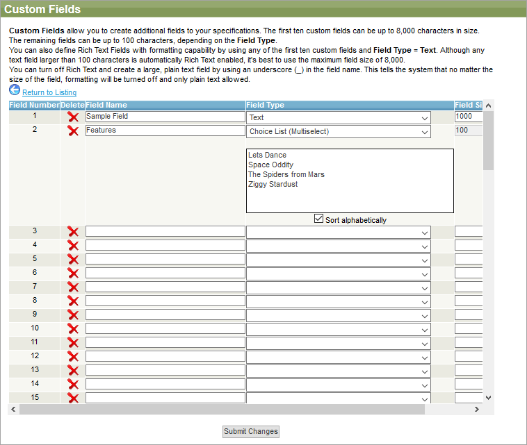Text Provides a custom field that can be a regular text entry field. Custom fields 1 through 10 can be up to 20000 characters and allow basic formatting.