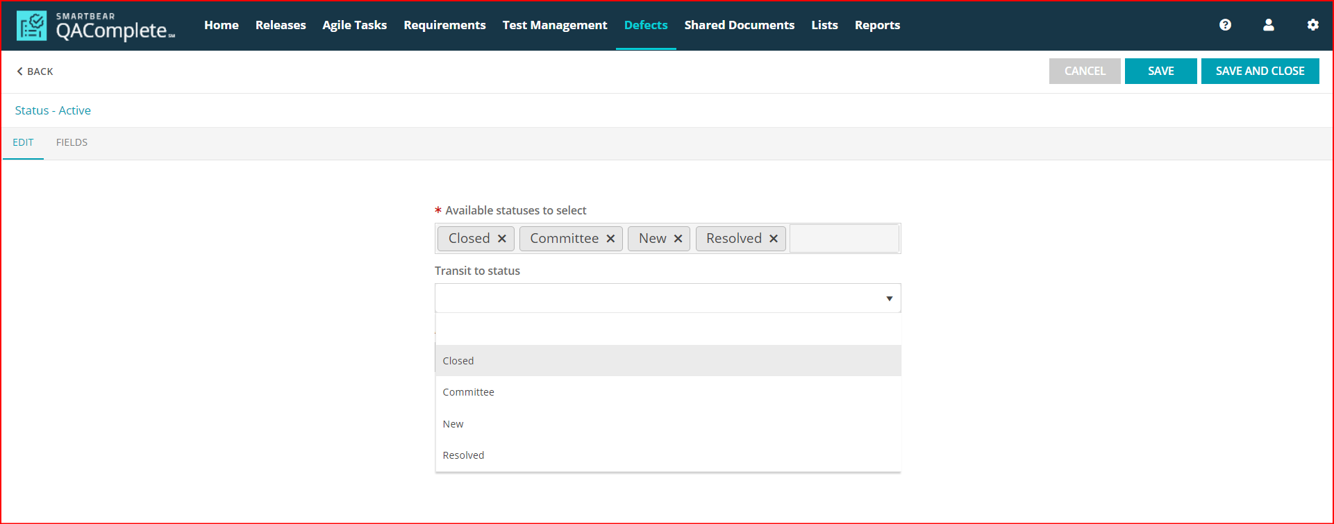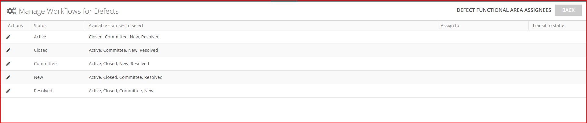 For example, to edit a workflow for defects: