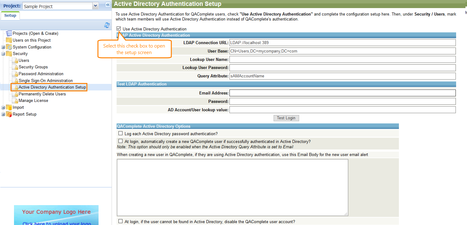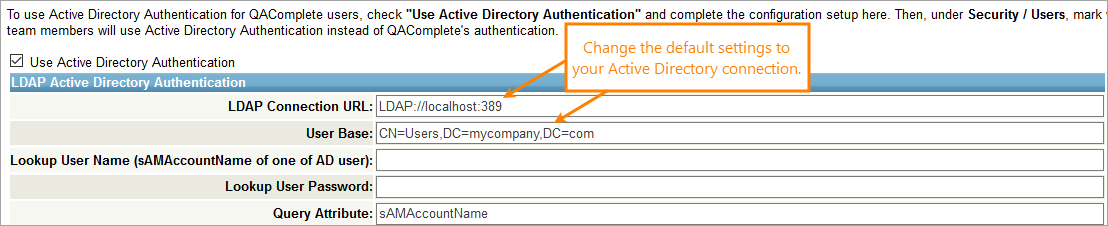 This topic describes how to prepare your QAComplete for the Active Directory authentication.