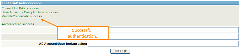 Enter the lookup value for the selected query attribute and password and click Test Login.