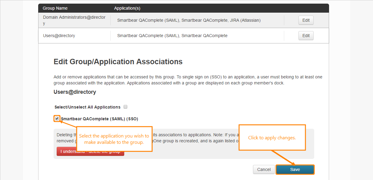 By default, PingOne users belong to groups. Before users from your organization can use PingOne to log in to QAComplete, you need to make this application available to one (or more) of these groups.