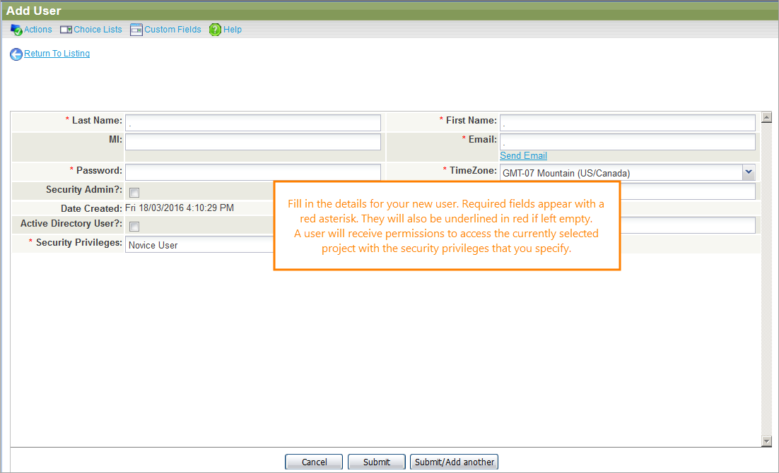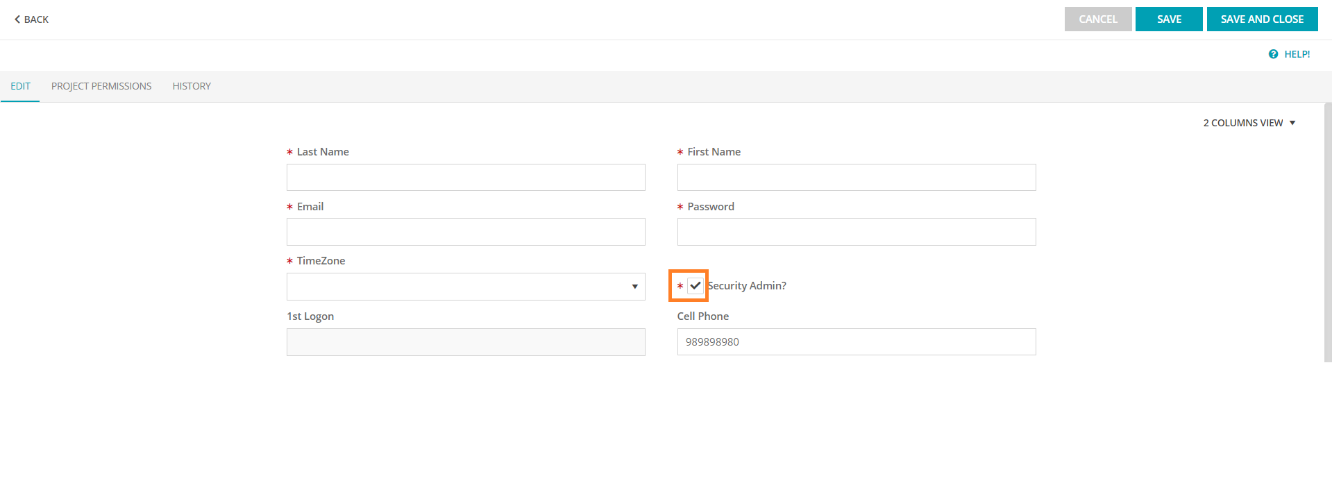 The Security Admin check box grants specific administrative rights to the user beyond what is controlled by security groups. These permissions are system wide, across all projects.
