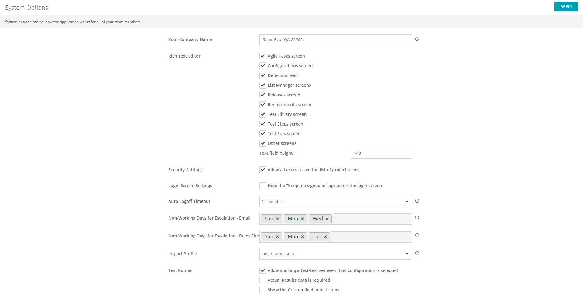 These preferences affect the entire application and all team members and can only be configured by administrators.