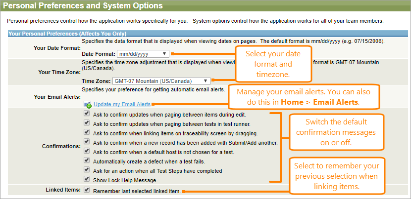 On the page, there is also the Personal Preferences section.Your Personal Preferences section, you modify the settings that affect your profile only. Each team member can change the settings for their own profile.