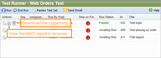• MHT – a web archive file. Users can view these logs in the browser directly from QAComplete.