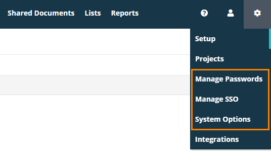 The configuration menu now provides administrators with quick access to password administration options, single sign-on options, and system options. The corresponding configuration screens also got a new UI design.
