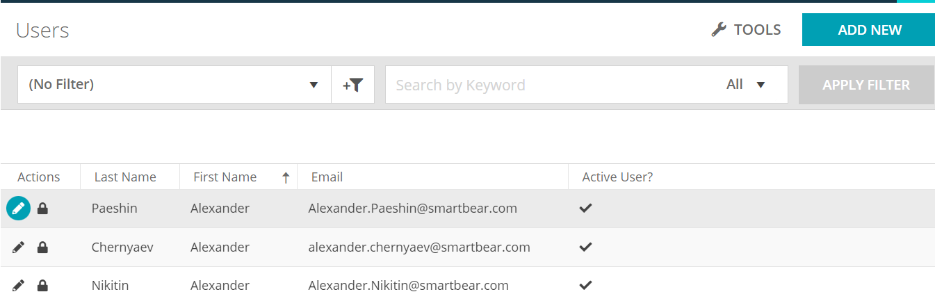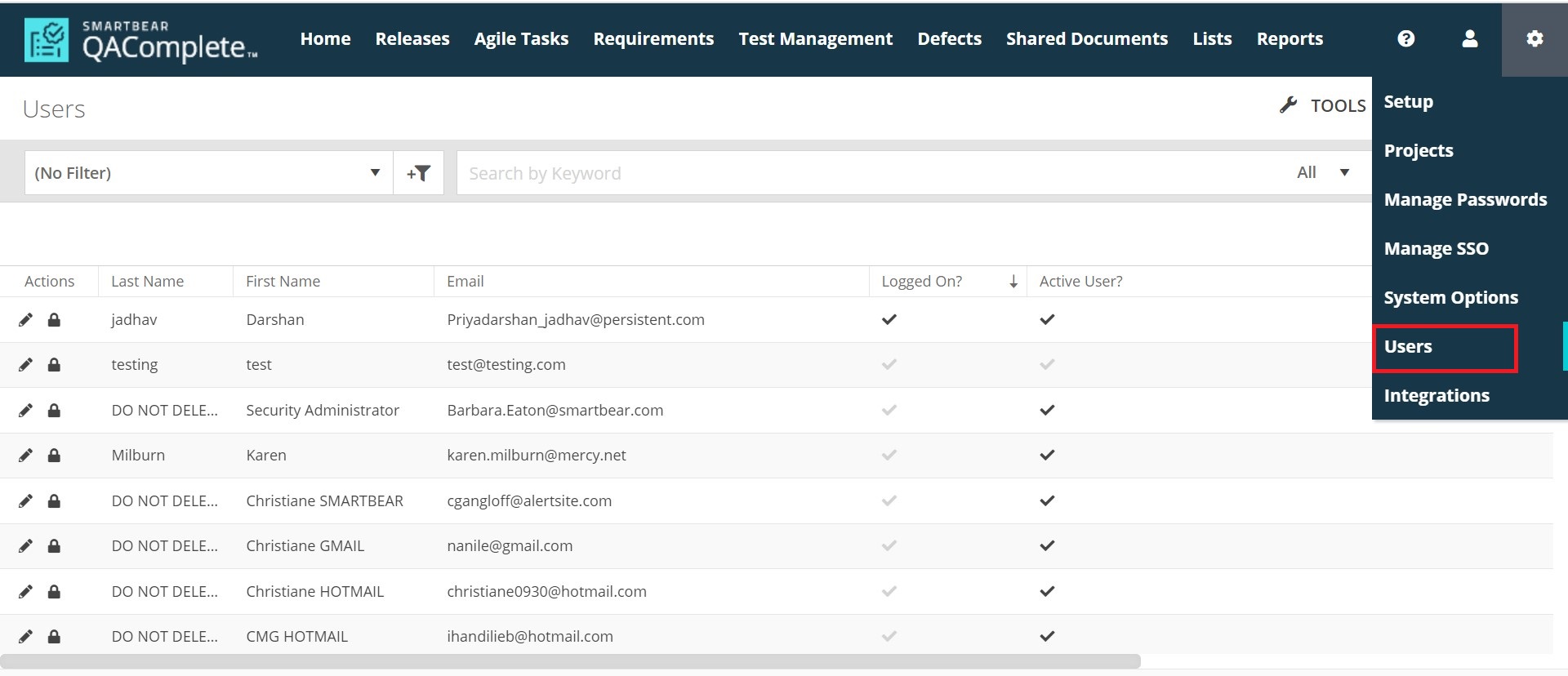 New UI for user management Administrators can use the new Users screen (accessible via the > Users menu) to create and manage Users, permanently delete user, and manage project permission.