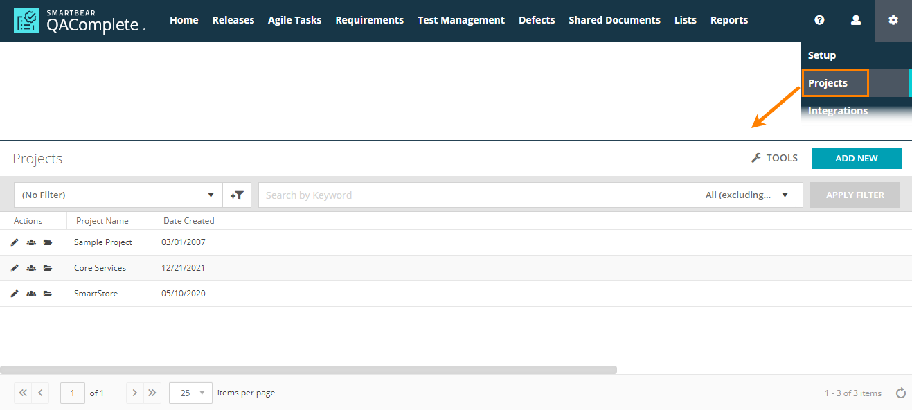 In QAComplete, you use projects to separate data for security purposes. Typically, a project corresponds to a software product or a module your team or company is developing. By default, QAComplete comes with the Sample Project you can use to get familiar with QAComplete functionality. You can also create a custom project if you need to: