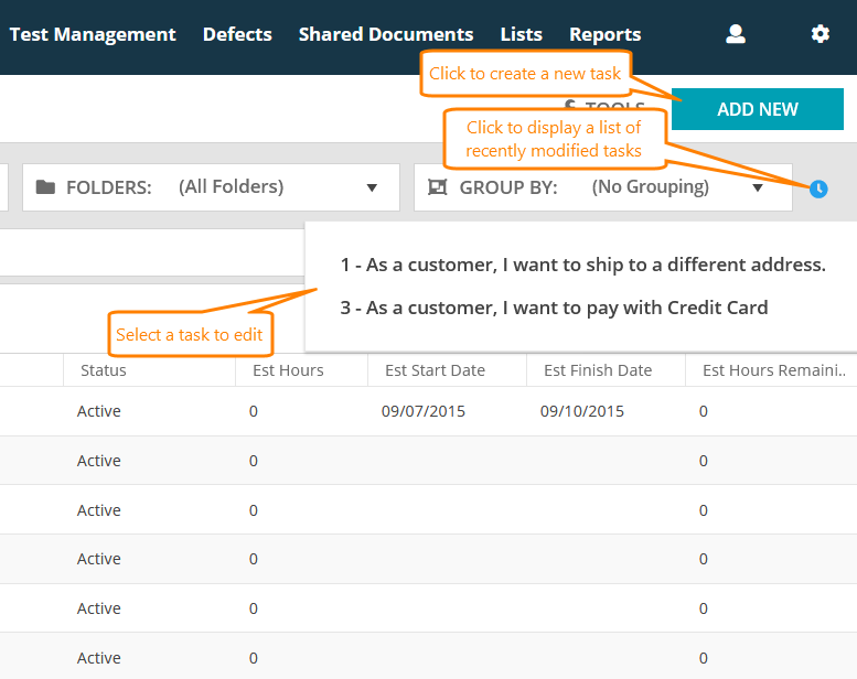 In QAComplete, agile tasks are items whose purpose is to break down requirements into smaller tasks and describe additional assignments you may need.