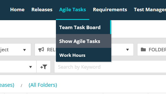 Agile Tasks: The Show Agile Tasks link on the toolbar