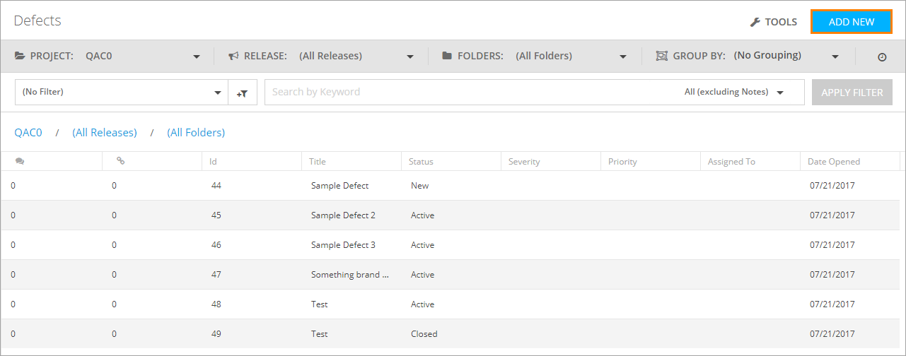 • To revert the changes and return back to the Defects screen, click Cancel.