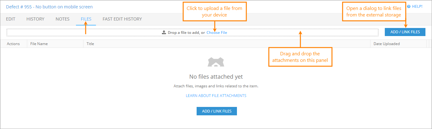 • Click Add / Link Files and upload the attachment in the subsequent dialog.
