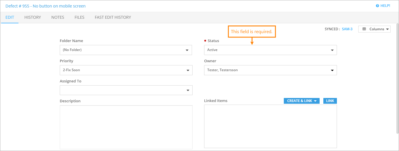 • To apply the changes you have made and stay in the Edit Defect form, click Save.