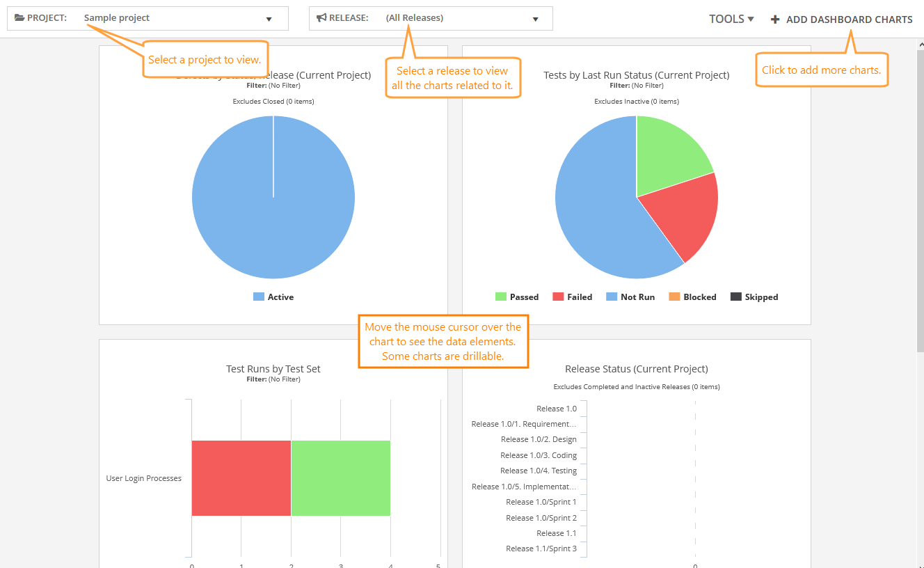 Note: You can also select a release from the Release drop-down menu to view all the charts related to that release.