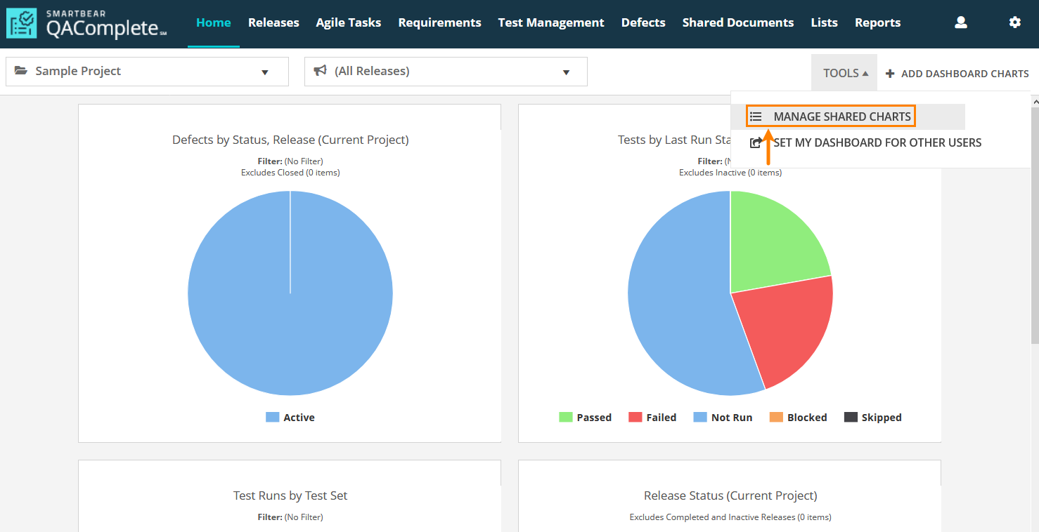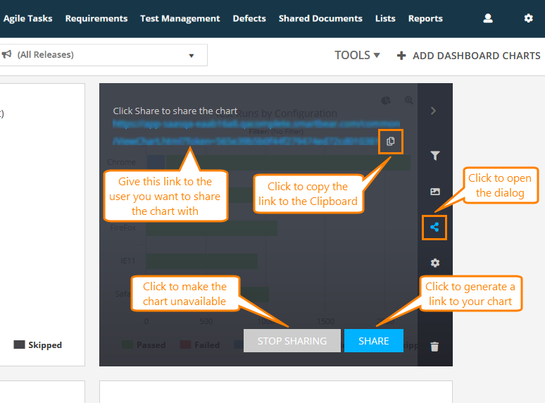 You can share your charts with any person, even if they don’t have a QAComplete account.