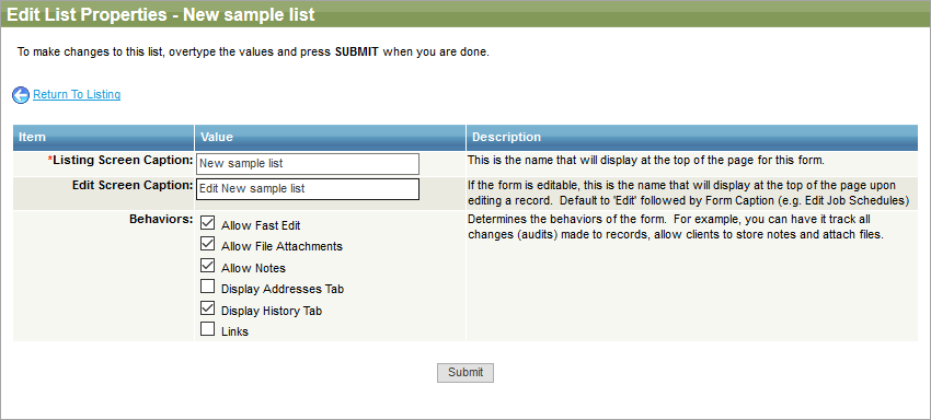 4. In Edit Screen Caption, specify a title for the Edit form of the list items.