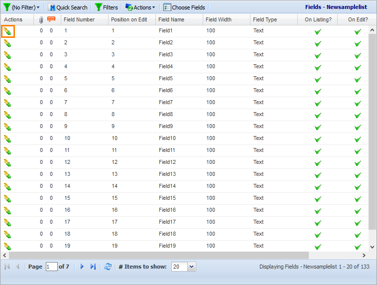 3. On the Manage Fields screen, click Edit this record in the Actions column next to the field you want to edit.