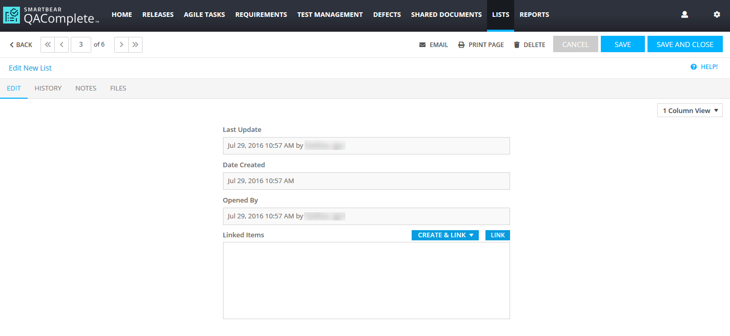 To delete the list from QAComplete, click Delete on the Edit List form.