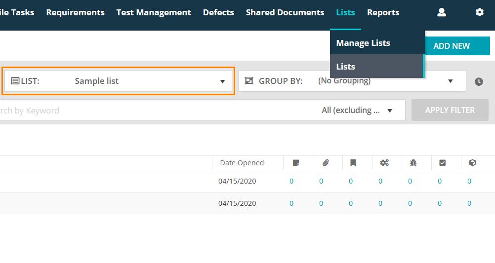 1. Go to Lists > Lists and select the list containing the item you want to edit from the List drop-down menu.