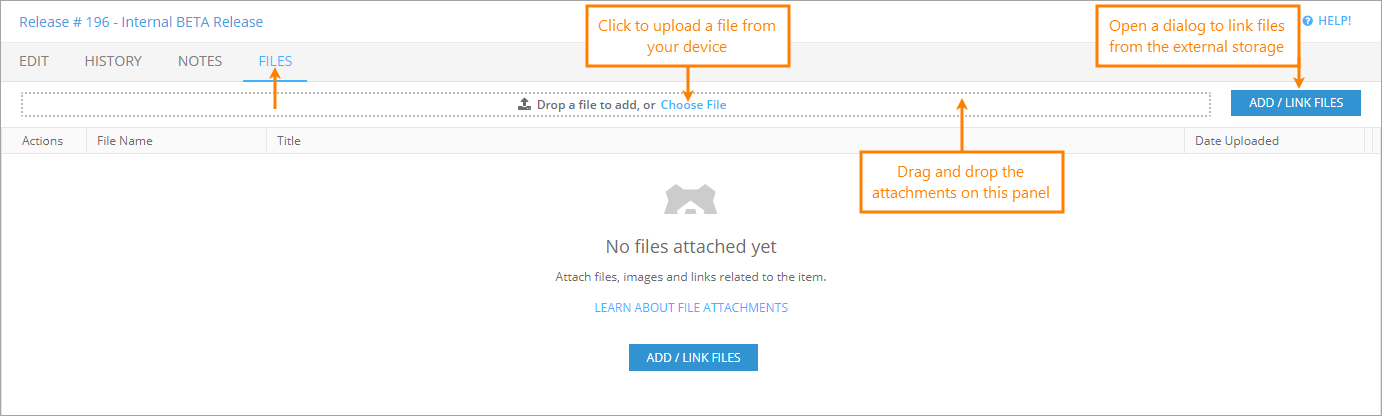 • Click Add / Link Files and upload the attachment in the subsequent dialog.