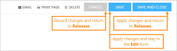 • To apply the changes you have made and return back to the Releases screen, click Save and Close.