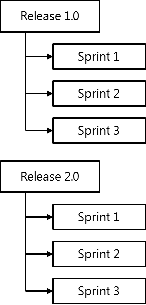 | Note: | In this example, Release 1.0 is not achieved until several iterations or sprints are performed. |