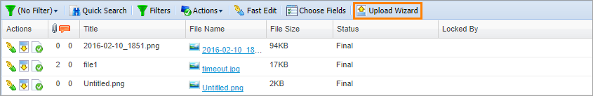 When you click the Upload Wizard button, the upload form appears: